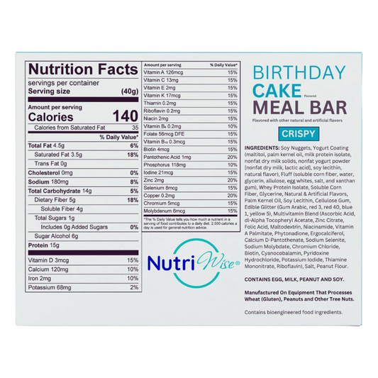 NutriWise Birthday Cake Meal Bars, High-Protein (7/Box)