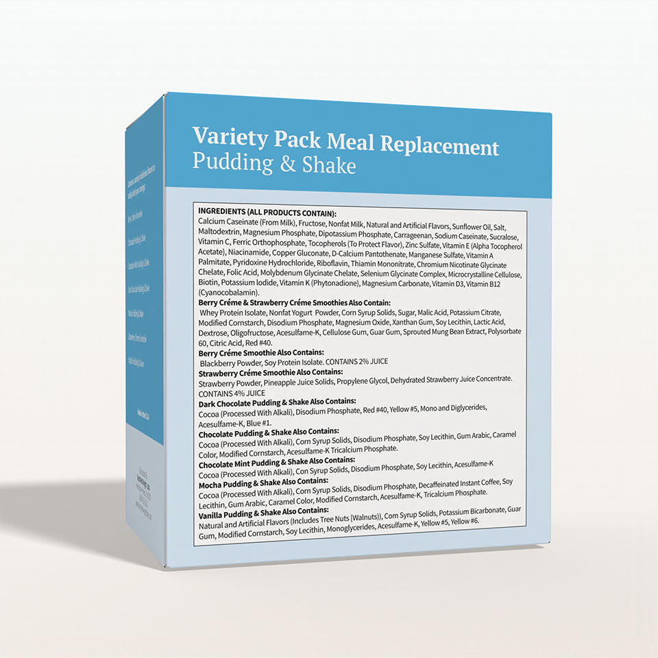 Cut out the stress of deciding which flavors you prefer with our Variety pack including: Berry Crème, Chocolate, Chocolate Mint, Dark Chocolate, Mocha, Strawberry Crème and Vanilla Meal Replacement