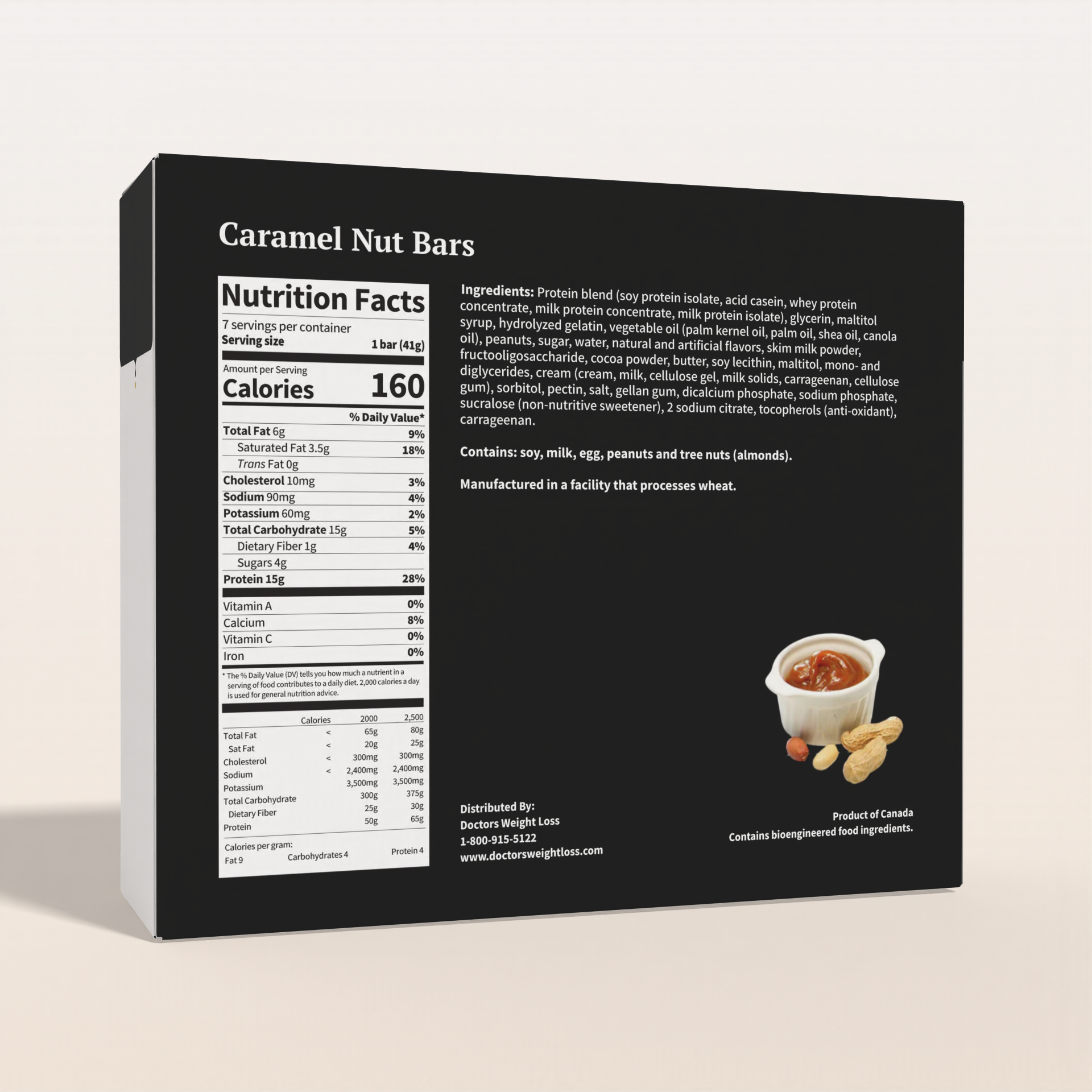 The perfect bar for any peanut butter or caramel lover! With subtle flavors of peanut butter combined with a delicate caramel center, our ProtiWise Caramel Nut Protein Bars are the rich, creamy alternative to any candy bar. Beat those cravings and keep your diet on track while savoring this smooth decadence. With 160 calories and 15g of quality protein, this bar is the perfect mid-day snack or meal replacement. Take a bar along with you in your bag for a quick treat any time of day or have as a post workout recovery!