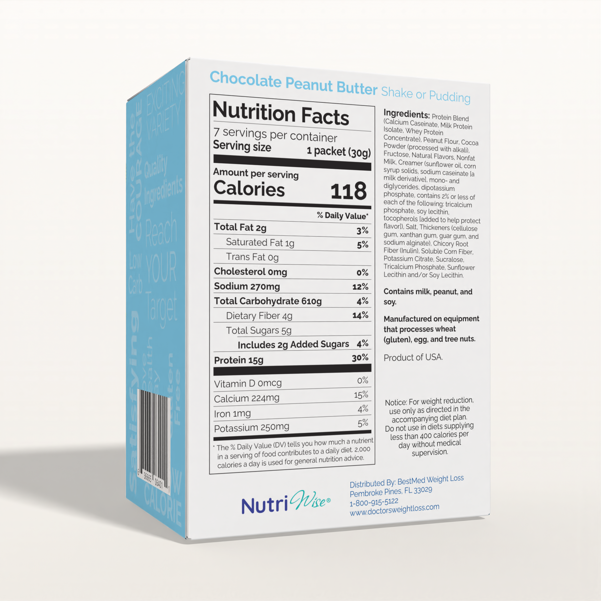 Satisfy your craving for a delightful, low-calorie, high-protein pudding or shake while staying true to your weight loss objectives. Experience the rich and creamy Chocolate Peanut Butter Pudding or Shake Mix, boasting only 118 calories and a generous 15 grams of protein. Indulge in a guilt-free pleasure that aligns perfectly with your fitness goals!
