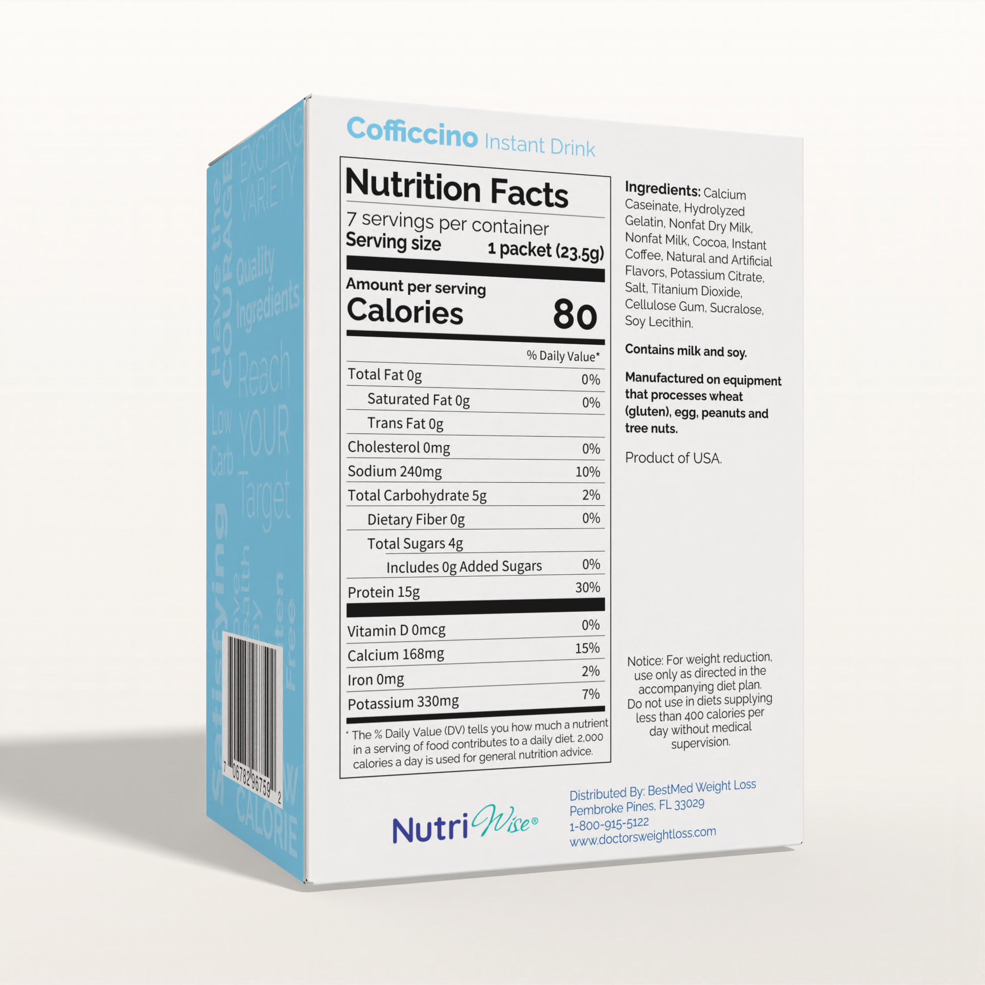 Indulge your love for coffee with our Cofficcino Instant Drink, a low-fat delight that boasts rich flavor. Whether served hot or cold, this beverage is a delightful treat at just 80 calories per serving, allowing you to enjoy it frequently without compromising your commitment to a healthy lifestyle.