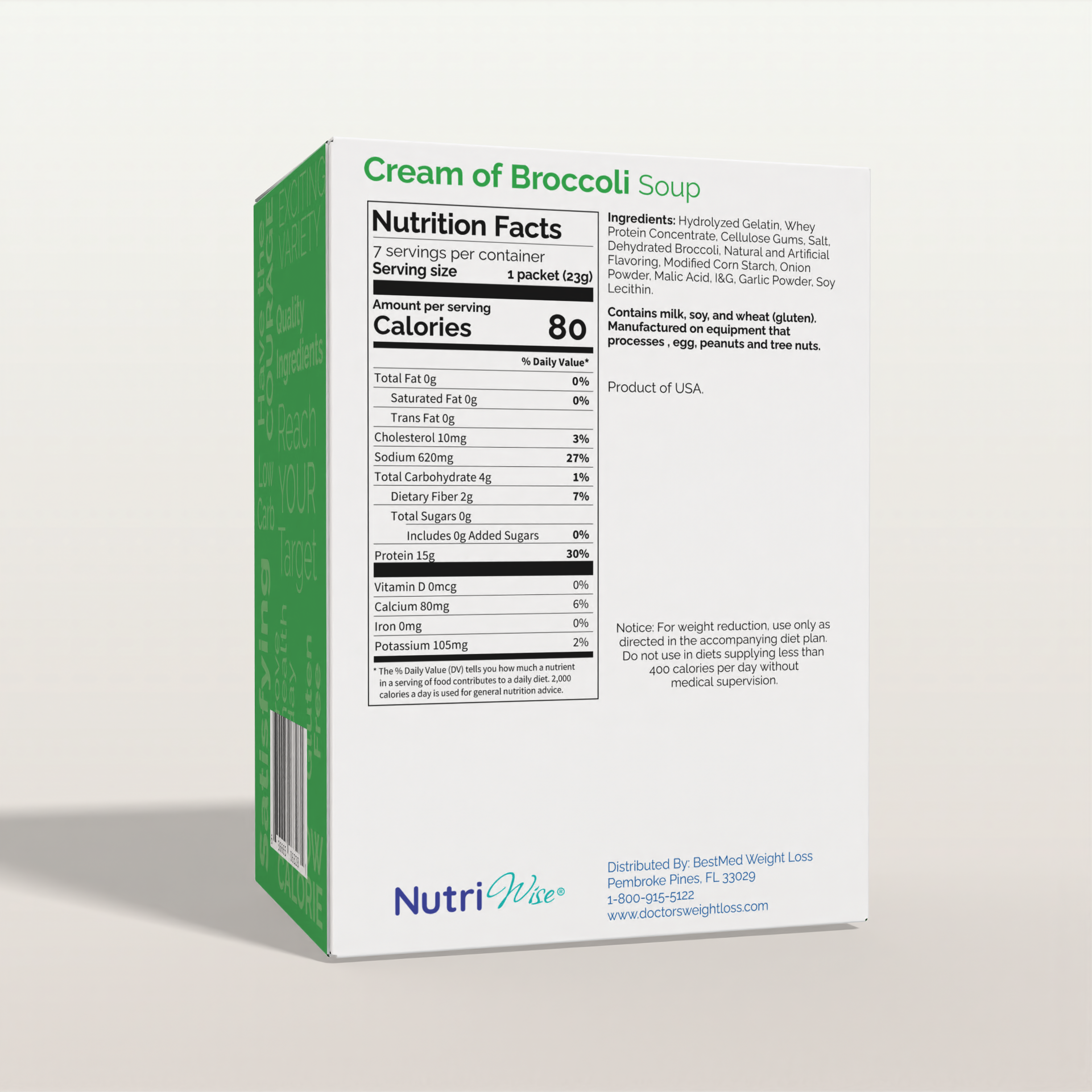 On days when you crave a heartier lunch option beyond the usual chocolate shake, our Cream of Broccoli Soup steps in as the perfect substitute. With a mere 80 calories, it delivers a generous 15g of protein, satiating your hunger and keeping cravings in check—all without compromising your weight loss journey.
