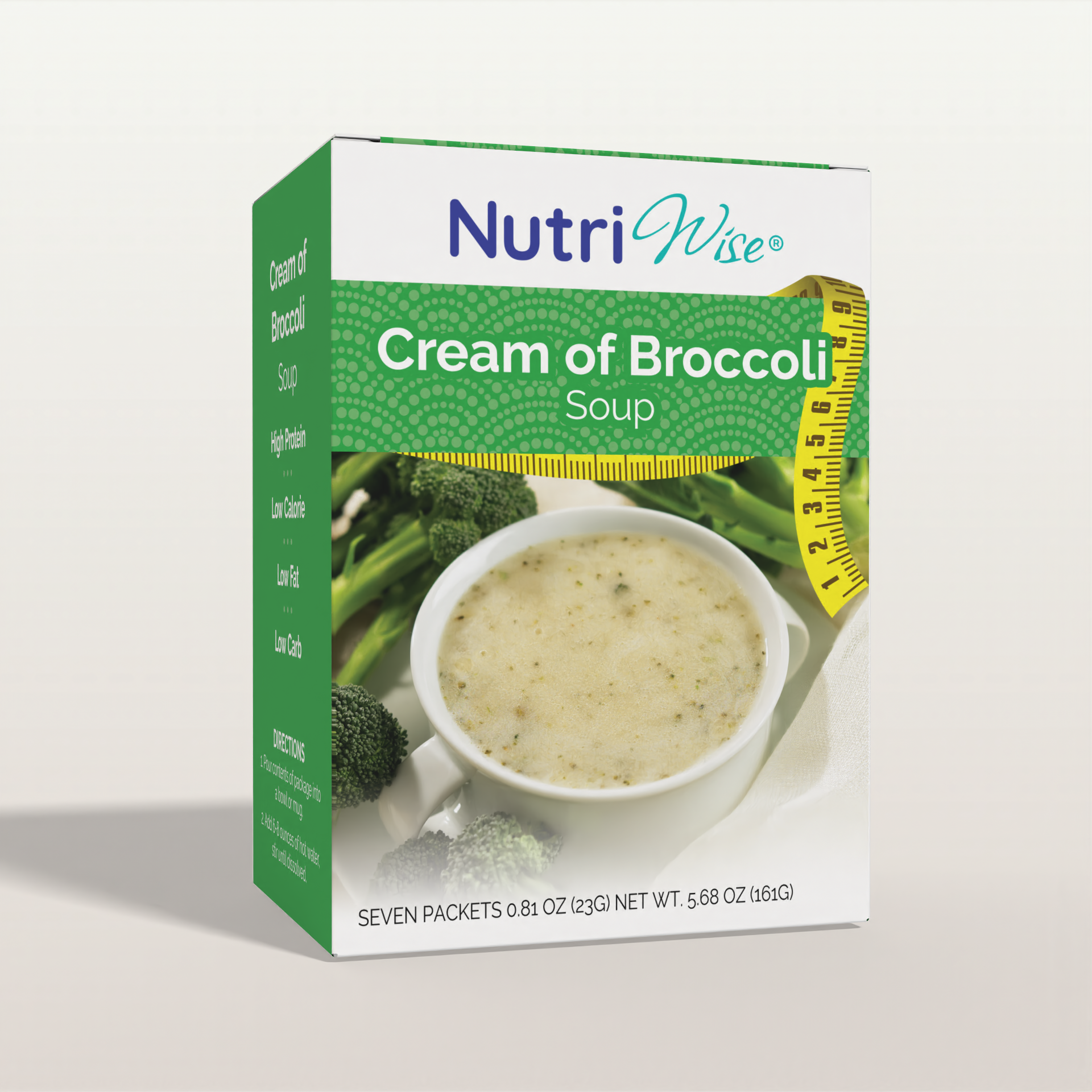 Each box holds seven convenient single-serving packets of Cream of Broccoli Soup mix. Preparation is a breeze, whether in the microwave or on the stove—just add hot water, stir or blend, and you're good to go. Free from soy, gluten, and saturated fat, this soup mix boasts a low 4g of carbs per serving.