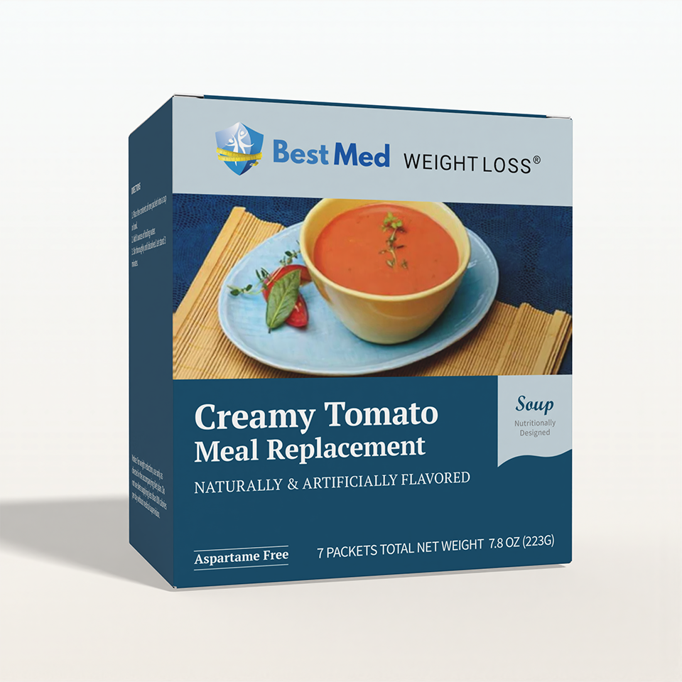 On a cold, rainy day indulge in our heart warming savory tomato soup. This Meal replacement will not only warm you up on the inside, but also make you happy on the outside. Our Creamy Tomato diet soup is extremely nourishing with 15 grams of protein and only 100 calories and 1.5 grams of fat. Our BestMed- Creamy Tomato Soup and a grilled cheese sandwich is a lunch combination made in heaven. The gooey cheese and crisp bread is the perfect pairing to the creamy, rich tomato taste of the Creamy Tomato soup. Quick, easy, and convenient; you can prepare it in the microwave or on the stovetop. No matter how you heat it up, within minutes you will be sipping on a steaming bowl of Cream of Tomato soup.