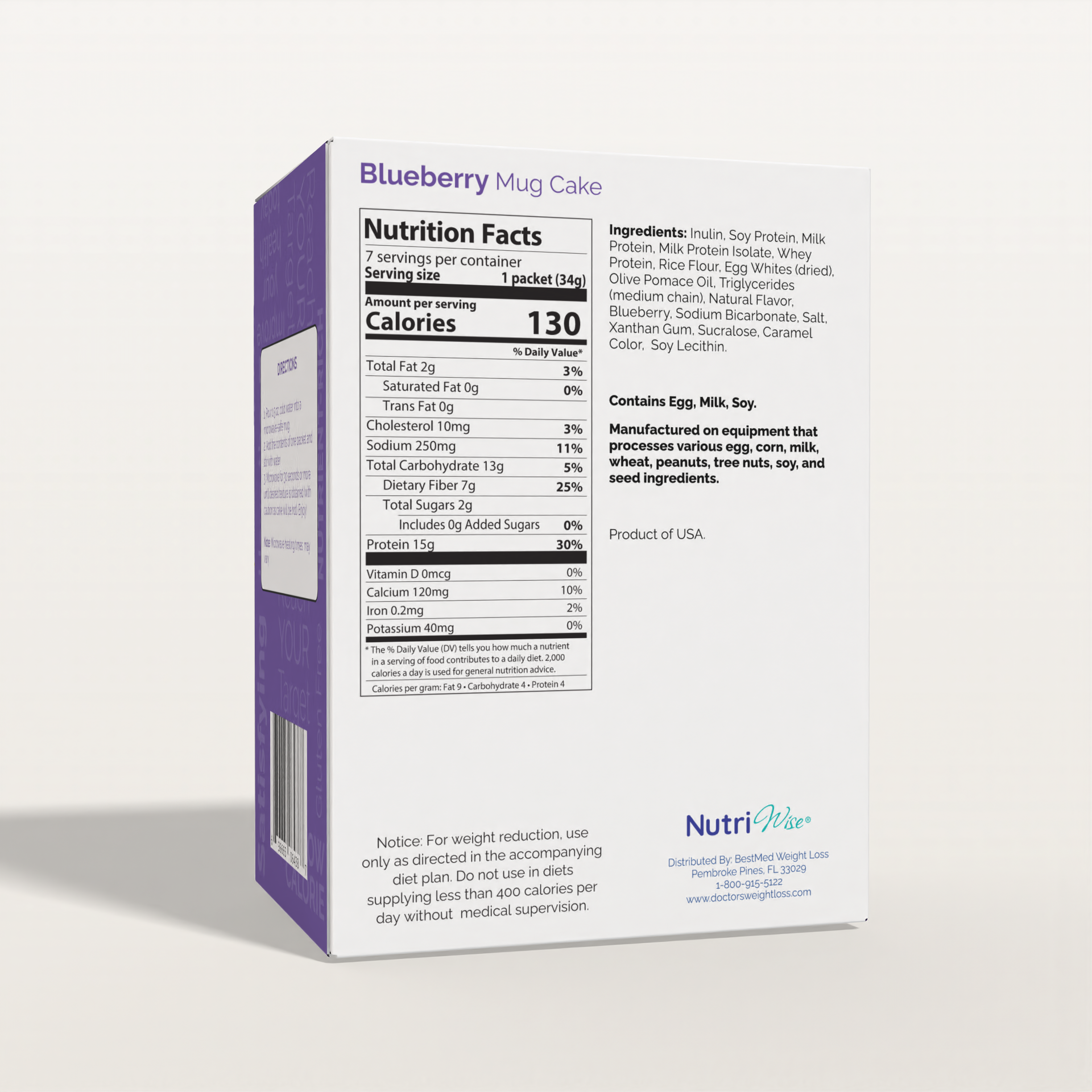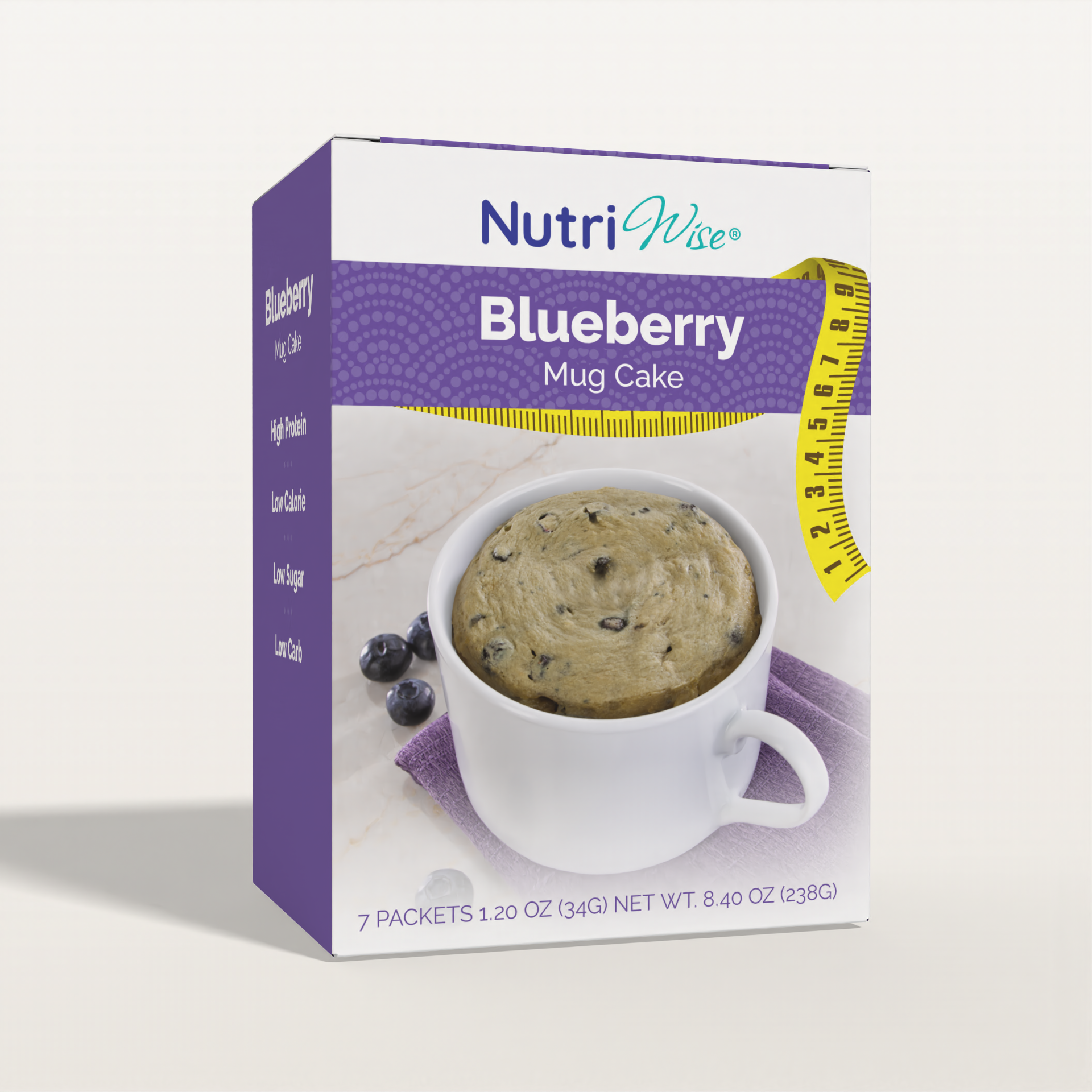 This warm, fluffy cake is not overly sweet and is bursting with delicious blueberries. Pop one of these single-serving NutriWise Blueberry Mug Cakes in the microwave and the beautiful aroma will make your mouth water before your first bite.