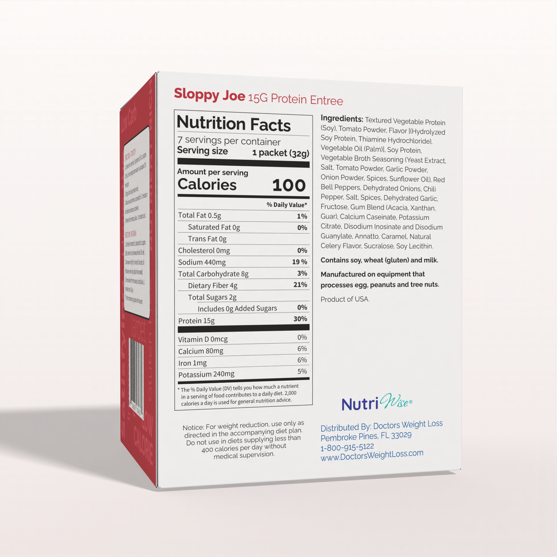 There's no need to cut the tasty, hearty meals you've grown to love from your diet. With NutriWise Sloppy Joe mix you can still get the classic American sloppy joe homestyle dinner without any unnecessary calories. At only 100 calories per packet and 15g of high quality protein, you can continue on your weight loss journey successfully. Use the packets to enjoy an appetizing dinner for one, or whip up a comforting, high protein meal for your family that they all can enjoy.