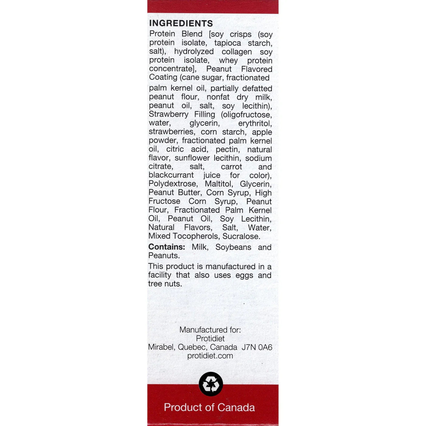 Ingredients: Soy Nuggets, (Soy Protein Isolate, Tapioca Starch, Salt), Maltitol Syrup, Chocolate Coating (Maltitol, Palm Kernel Oil, Whey Protein Hydrolysate, Cocoa Powder processed with Alkali, Cocoa Powder, Sugar, Palm Oil, Soy Lecithin, Natural and Artificial Flavor, Sucralose), Glycerin, Soy Protein Isolate, Hydrolyzed Gelatin, Polydextrose, Chocolate Liquor, Canola Oil, Cocoa Powder processed with Alkali, Whey Protein Isolate, Fractionated Palm Kernel Oil, Arabic Gum, Cocoa Powder, Natural and Artificial Flavor, Soy Lecithin, Natural Flavor, Salt, Water, Sucralose, Mixed Tocopherols. ALLERGY INFORMATION: CONTAINS: SOYBEANS AND MILK. THIS PRODUCT IS MANUFACTURED IN A FACILITY THAT USES PEANUTS, WHEAT, EGG, OTHER NUTS AND SEEDS.