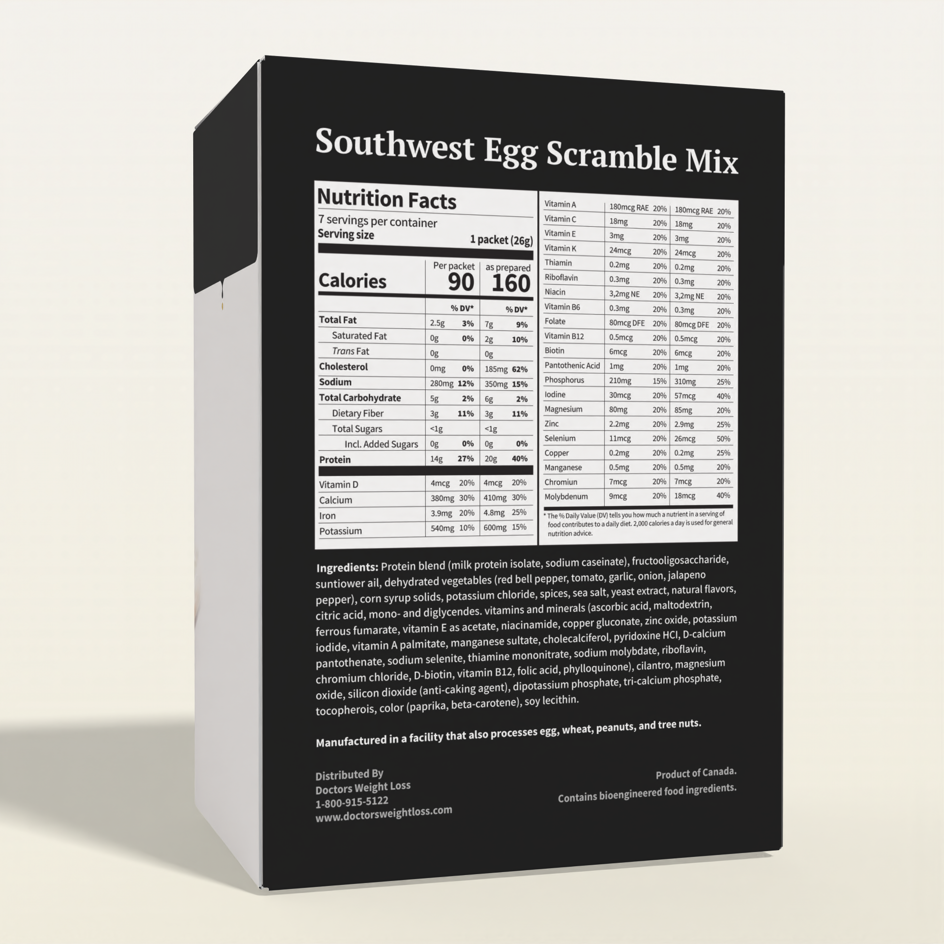Start your day with a delicious and nutritious breakfast with our High-Protein Southwest Egg Scramble Mix. Perfect for any day of the week, simply add fresh eggs and one packet of seasoning to create the ultimate home-cooked meal.