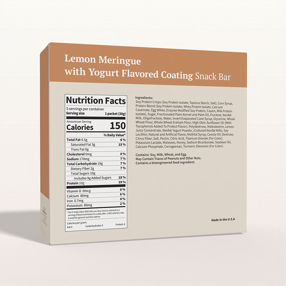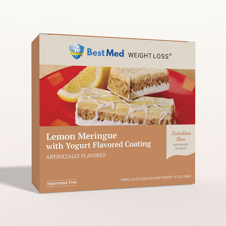 If you like lemon meringue pie then BestMed's Lemon Meringue Snack Bar is the ideal snack for you! The crisp center is topped with a lemon mousse so delicious you won't believe that it only has 150 calories. The 10 grams of protein will provide you with the boost you need in-between meals. Try it with a cup of tea or a glass of low-fat milk.